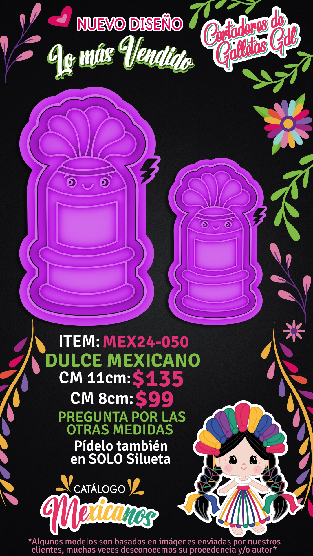 Dulce mexicano - Elige entre todas las opciones disponibles! | Cortador con Marcador 11cm, Cortador con Marcador 10cm, Cortador con Marcador 9cm, Cortador con Marcador 8cm, Silueta 5cm, Silueta 6cm, Silueta 7cm, Silueta 8cm, Silueta 9cm, Silueta 10cm, Silueta 11cm |
