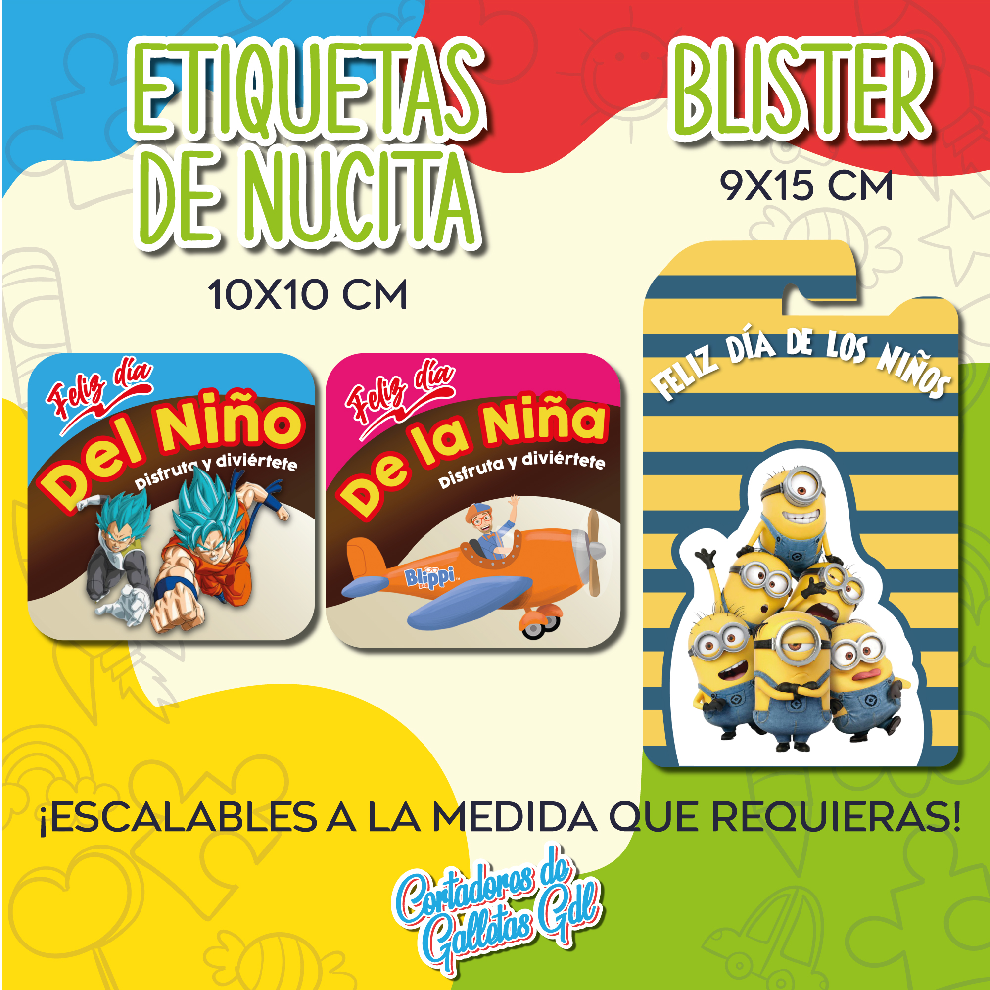 Incluye todos los diseños de tendencia, dulces, blisters…  y todos los puedes personalizar con tus datos o logo!