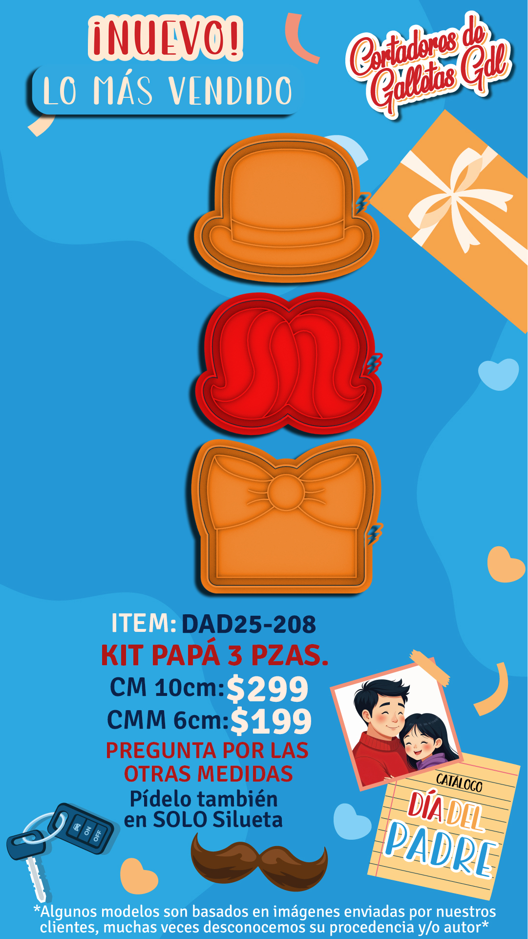 Kit papá - Elige entre todas las opciones disponibles! | Cortador con Marcador 10cm, Cortador con Marcador 6cm, Silueta 5cm, Silueta 6cm, Silueta 7cm, Silueta 8cm, Silueta 9cm, Silueta 10cm, Silueta 11cm |