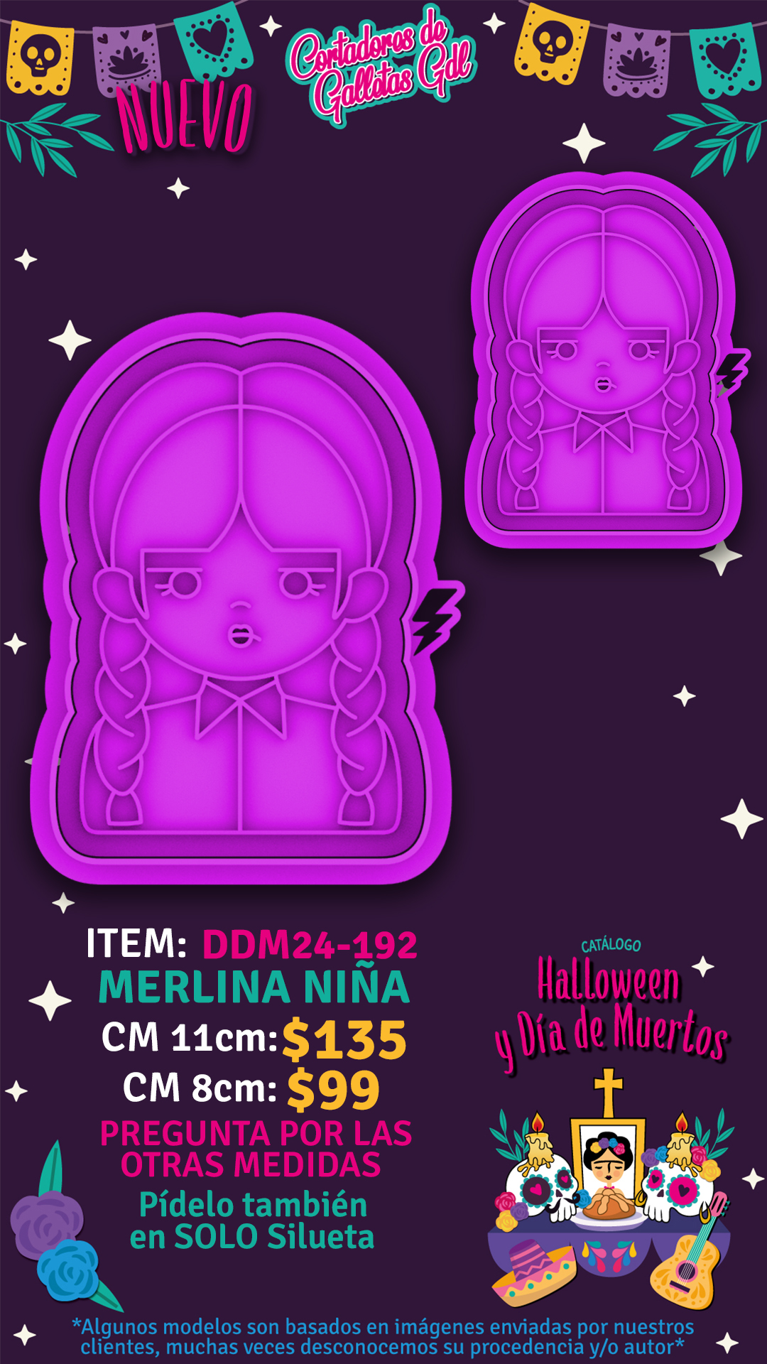 Merlina Niña - Elige entre todas las opciones disponibles! | Cortador con Marcador 11cm, Cortador con Marcador 10cm, Cortador con Marcador 9cm, Cortador con Marcador 8cm, Silueta 5cm, Silueta 6cm, Silueta 7cm, Silueta 8cm, Silueta 9cm, Silueta 10cm, Silueta 11cm |