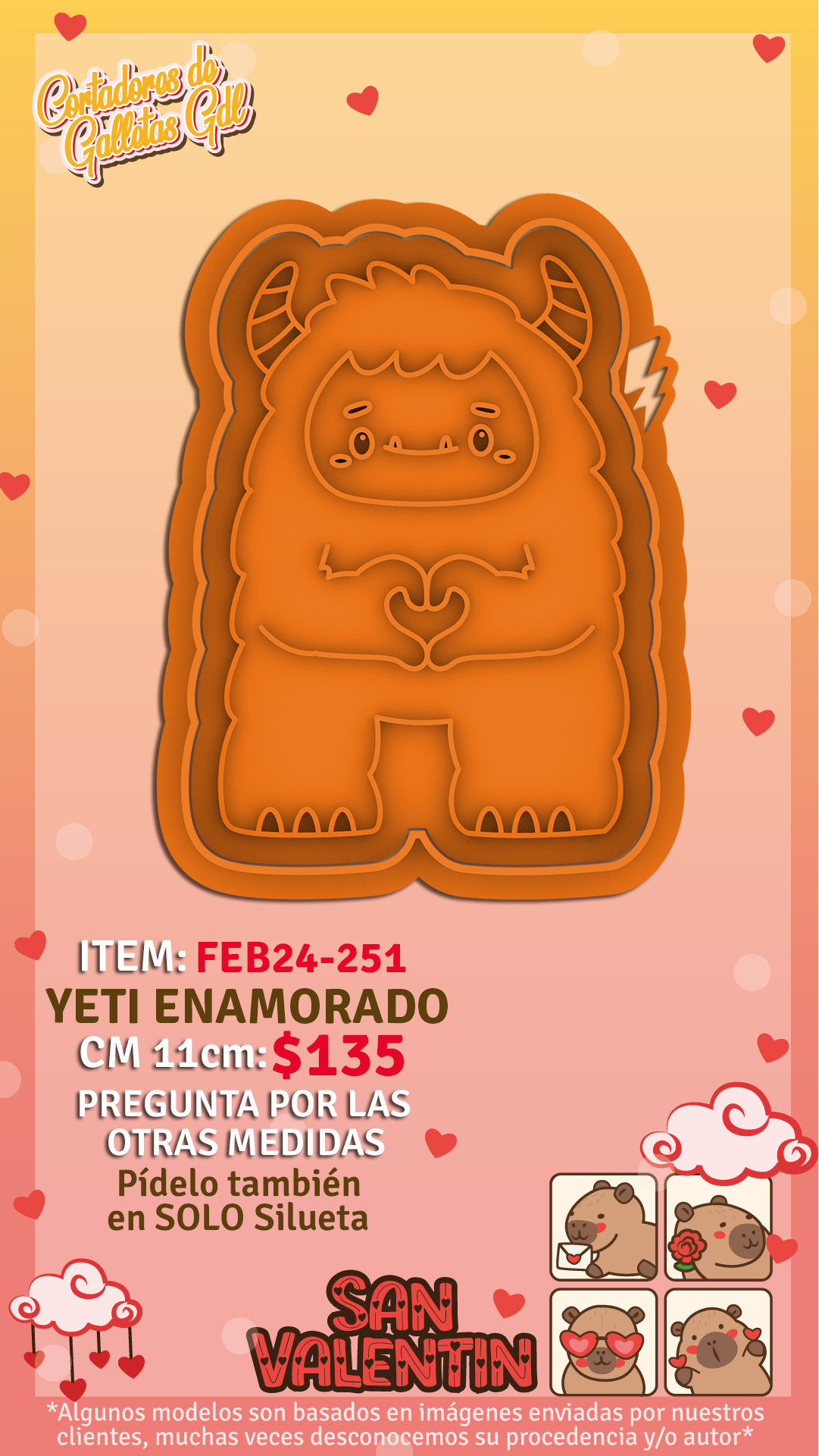 | Yeti enamorado - Elige entre todas las opciones disponibles! | Cortador con Marcador 11cm, Silueta 5cm, Silueta 6cm, Silueta 7cm, Silueta 8cm, Silueta 9cm, Silueta 10cm, Silueta 11cm |